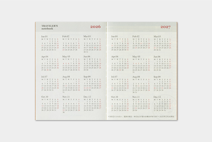 日本 TRAVELER'S notebook 2026 PA時效內頁 月間